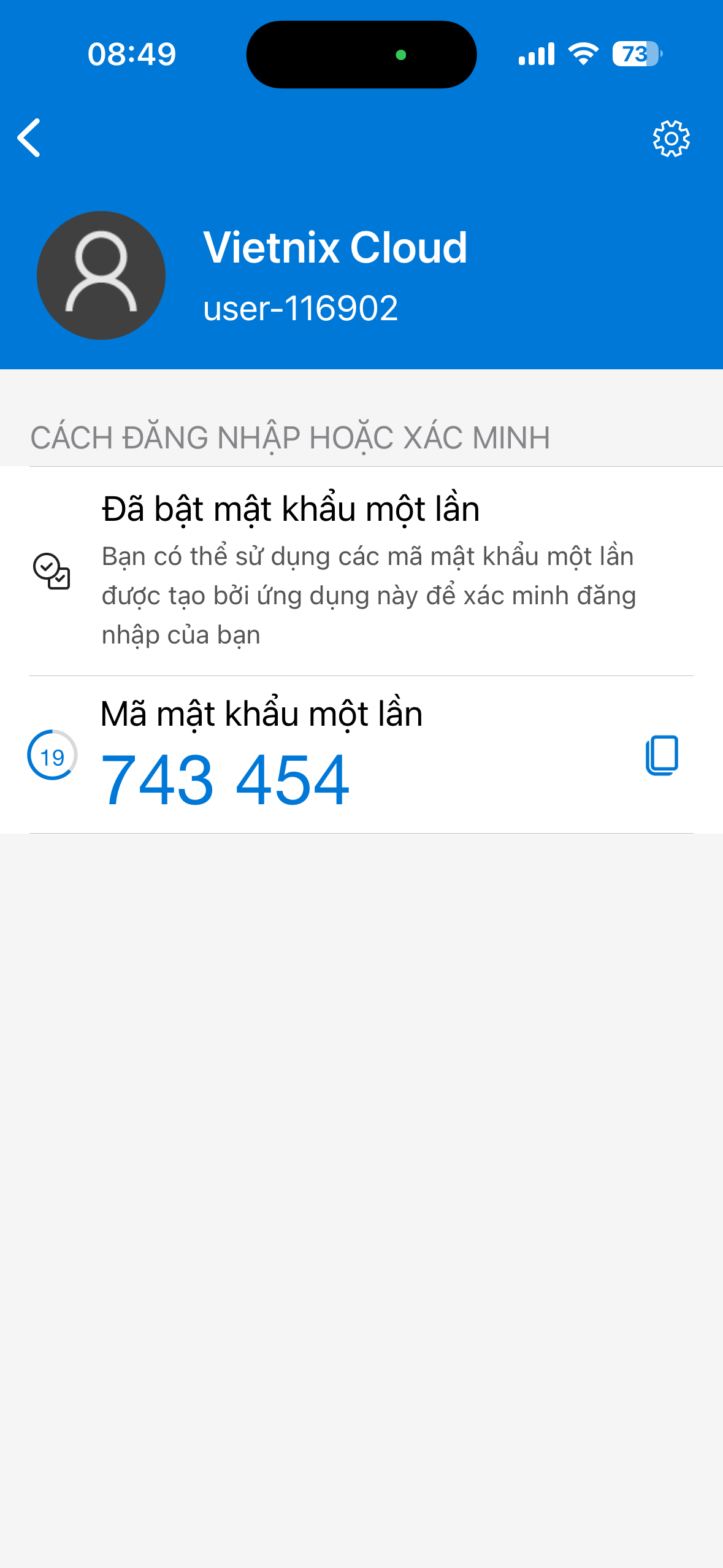 Microsoft Authenticator sẽ tự động thêm Vietnix Cloud vào danh sách tài khoản và bắt đầu tạo mã 6 chữ số làm mới mỗi 30 giây.